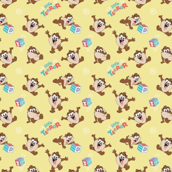 This is for a Fat Quarter of printed, 100% cotton Fabric from the range of printed fabrics by Camelot. For reference the Taz with the alphabet block measures approx 4cm x 2.5cm.
